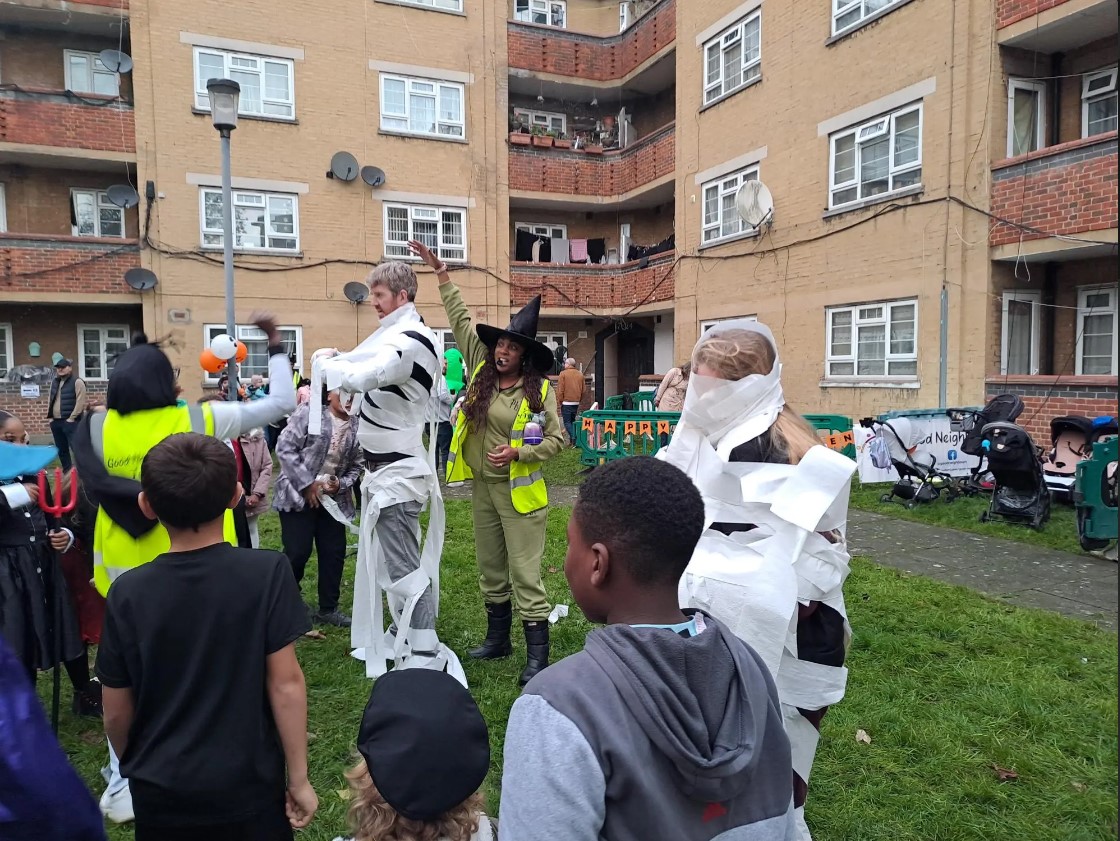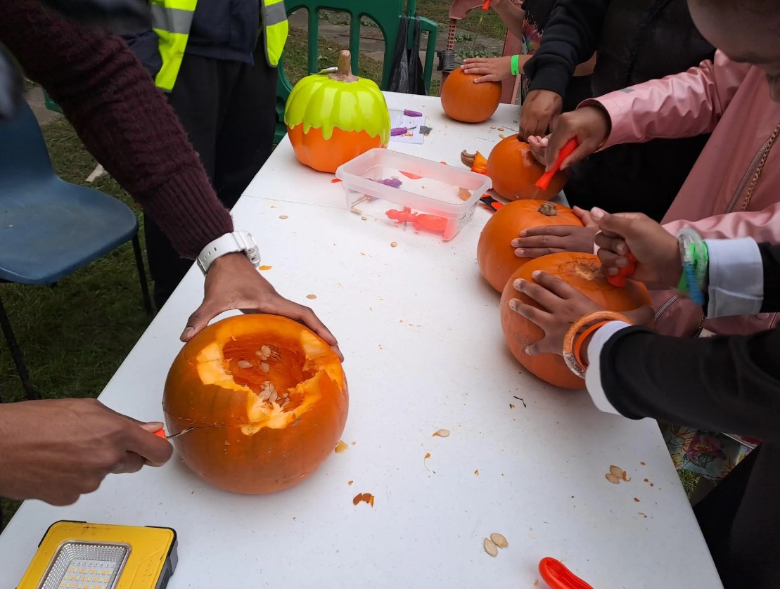 Our Customer Liaison Officer, Charelle, recently volunteered at the Good Neighbours Kids’ Halloween Party. This annual event, advertised through Match My Project via The Hyde Group, brings families and children together for a spooky fun day with various activities for kids, including pumpkin carving, carnival games, face painting, Halloween bingo, a fancy dress competition, raffles, and a dance fitness session to keep everyone busy!